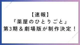 コンテンツ 【速報】アニメ『薬屋のひとりごと』第3期&劇場版が制作決定!2026年10月より放送・12月には劇場公開へ アニメ『薬屋のひとりごと』が第3期&劇場版の制作決定を発表。第3期は2026年10月放送開始、劇場版は12月公開予定。監督・原作者コメントや新章「市井編」の見どころを速報で紹介。 2025.10.23 コンテンツ